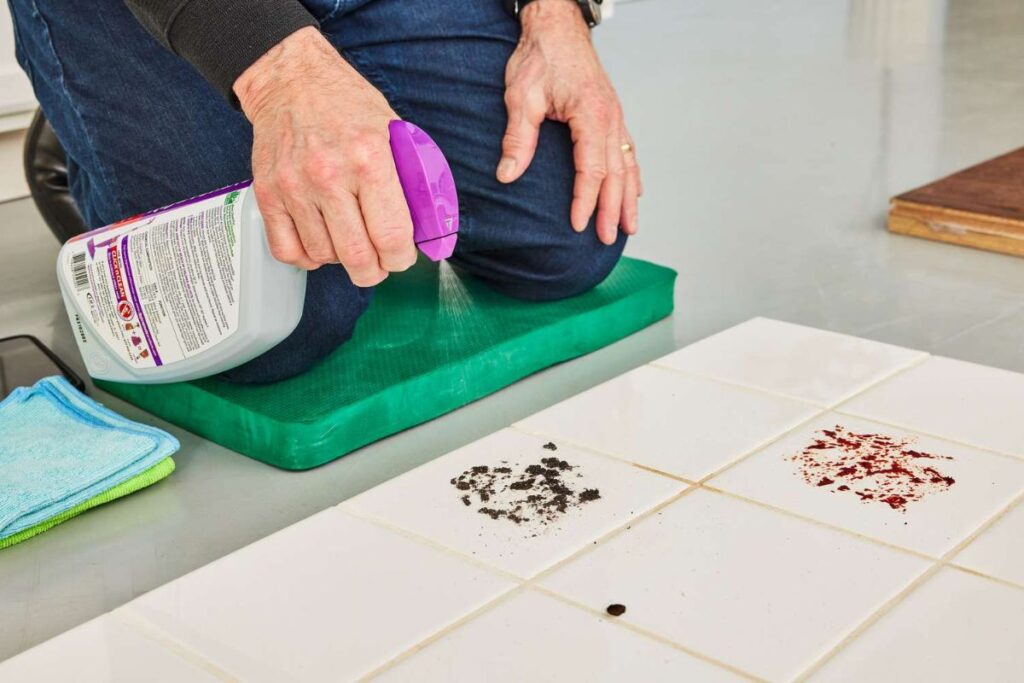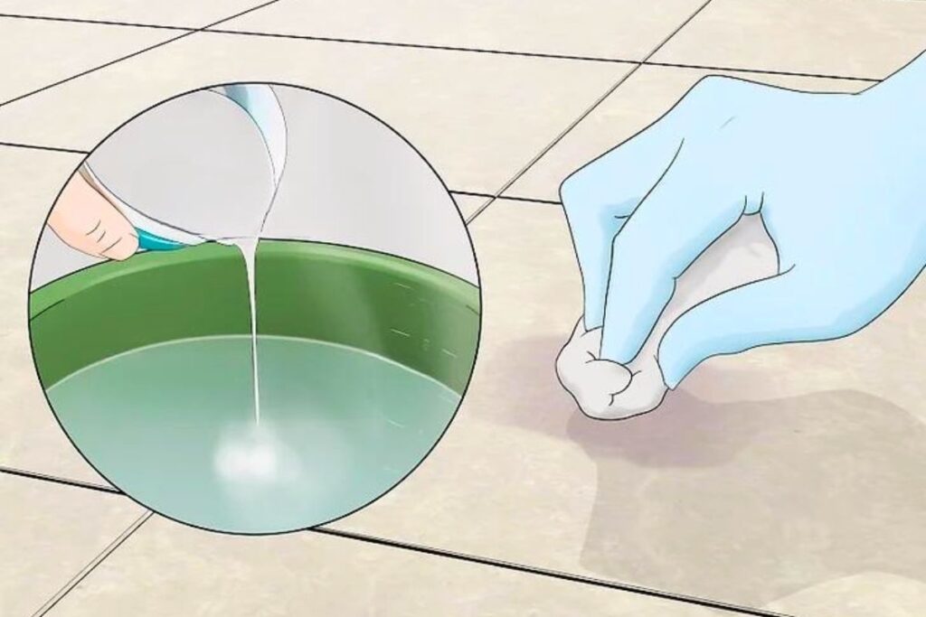 Dùng thuốc tẩy làm sạch vết bẩn trên gạch lát