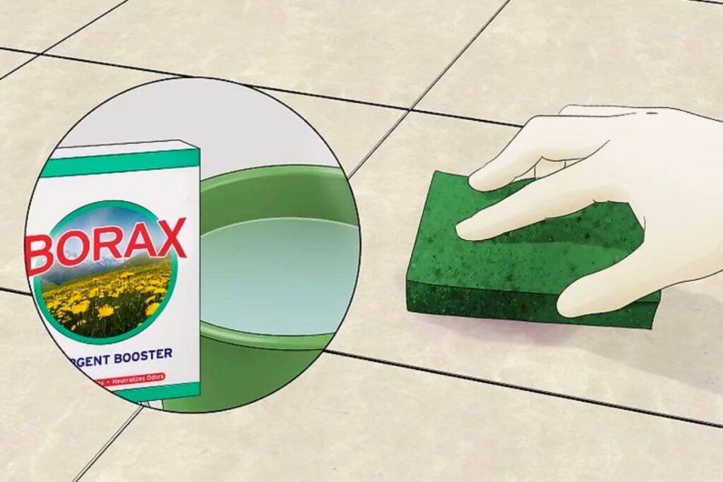 Trộn borax với nước để loại bỏ vết bẩn trên gạch lát. Nhúng miếng bọt biển nhám vào dung dịch và chà sạch vết bẩn. Borax phù hợp với gạch lát có lớp hoàn thiện như gạch ceramic và đá cẩm thạch.
