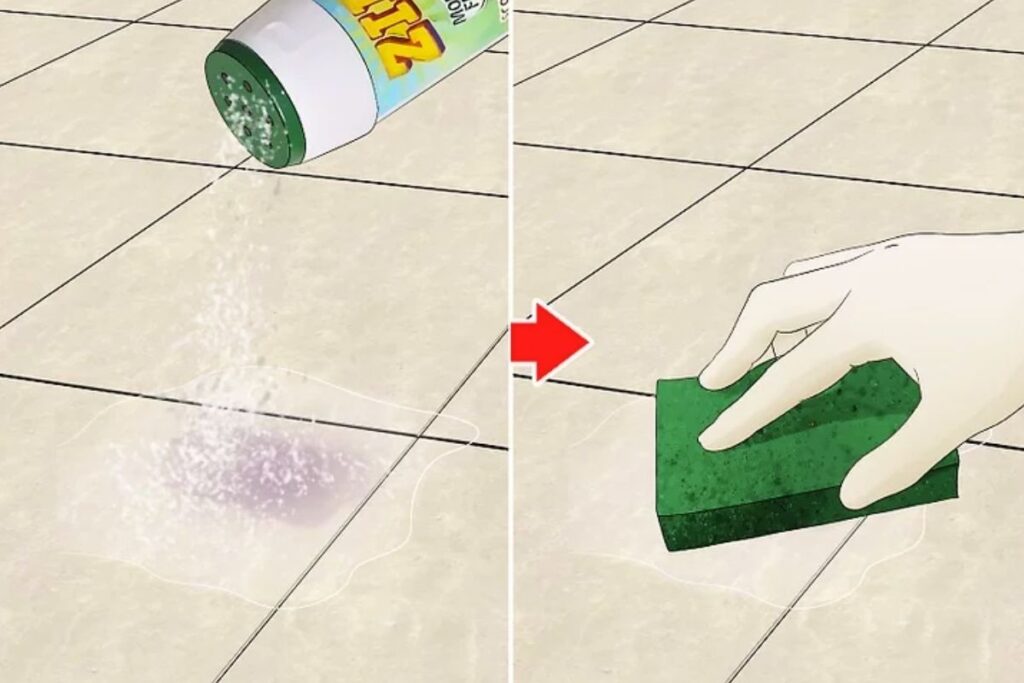 Dùng bột cọ rửa tẩy vết bẩn trên gạch lát