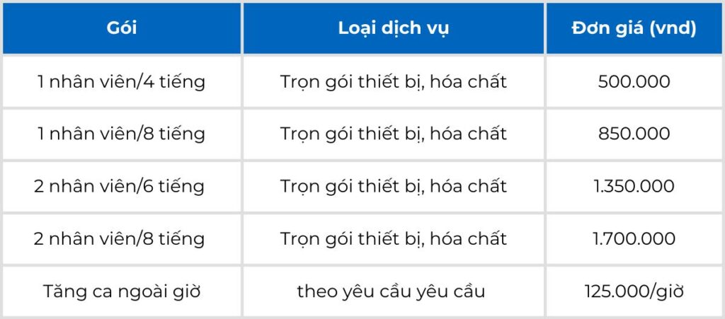 Bảng giá dịch vụ vệ sinh theo yêu cầu
