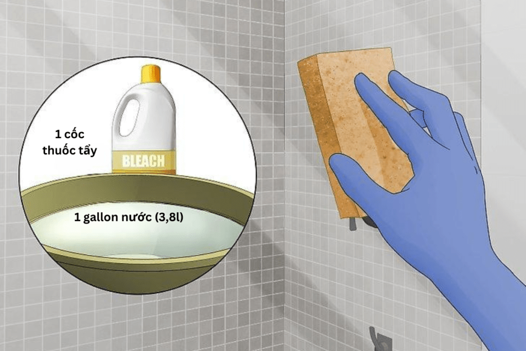 Vệ sinh ẩm mốc đen băng thuốc tẩy