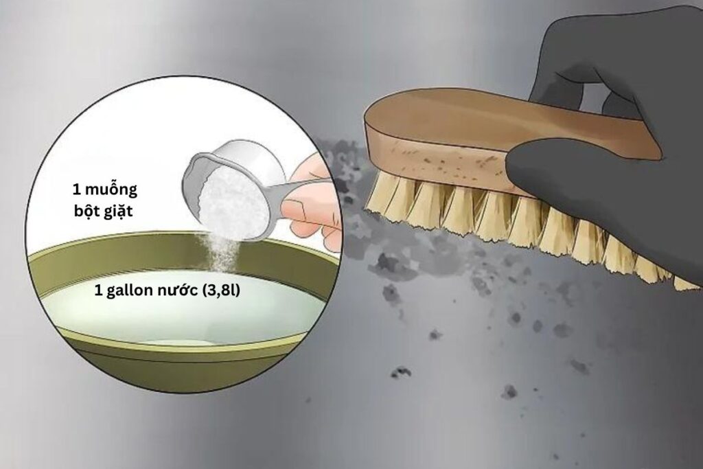 • Dùng bàn chải chà hỗn hợp lên khu vực bị nấm mốc.