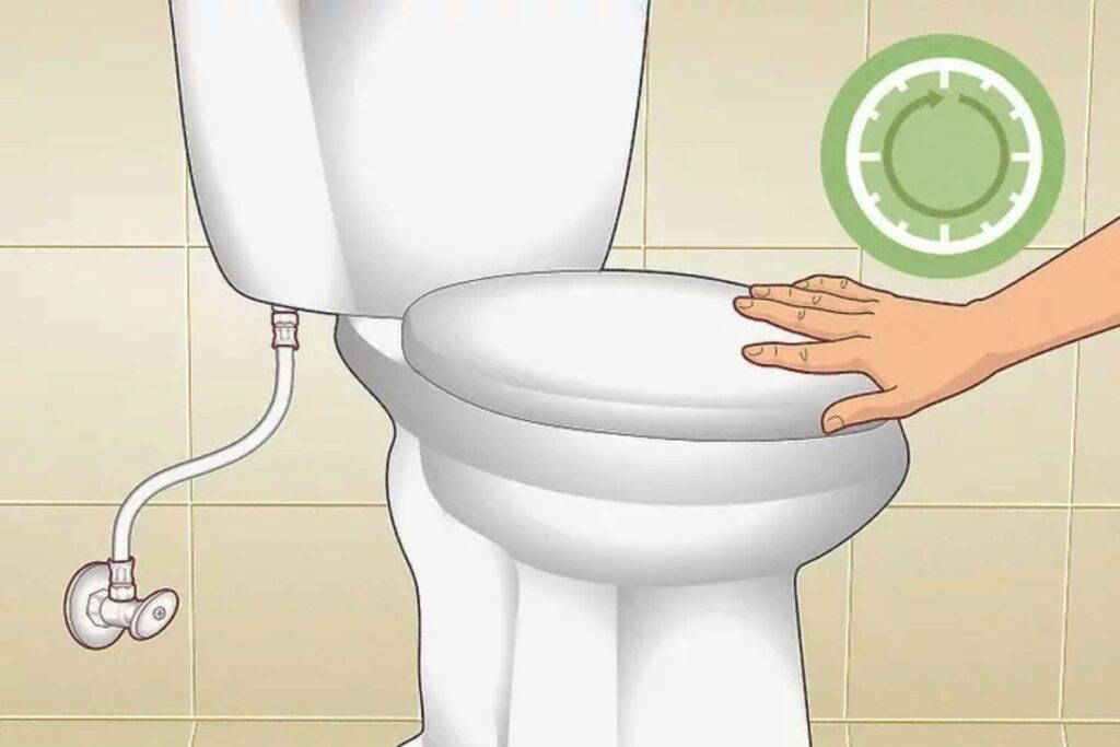 Trước khi vệ sinh, hãy khóa van nước sau bồn cầu bằng cách vặn theo chiều kim đồng hồ, sau đó xả hết nước trong bồn. Điều này giúp bồn cầu khô ráo, thuận lợi cho việc làm sạch bằng giấm và baking soda. Khi vệ sinh xong, chỉ cần mở lại van ngược chiều để nước chảy và xả bồn như bình thường.