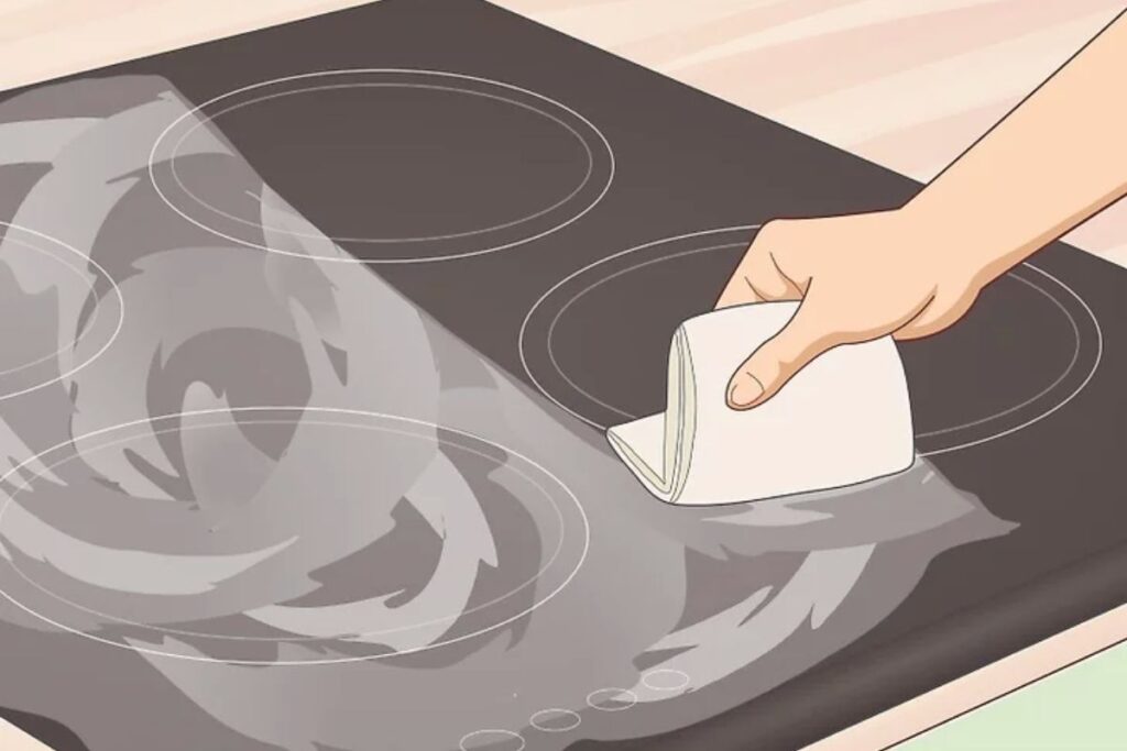 Lưu ý: Tránh ấn mạnh khi lau để không làm vỡ hoặc hỏng mặt bếp