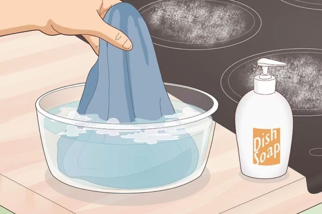 Ngâm khăn sợi nhỏ trong nước xà phòng