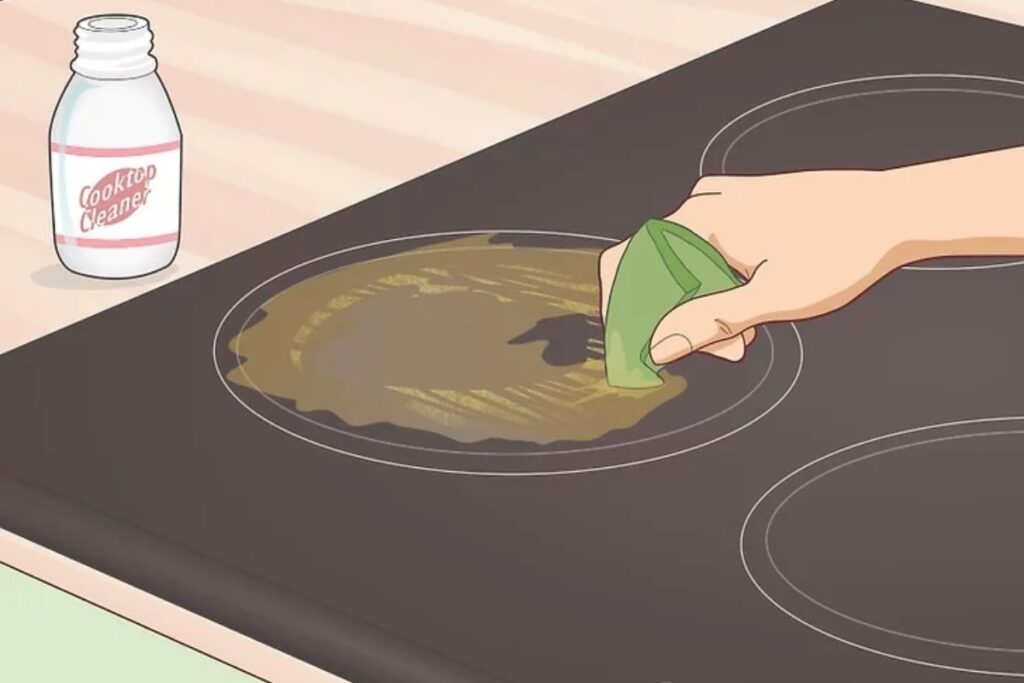 Bước 4: Thoa chất tẩy rửa bếp điện